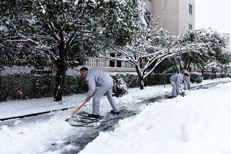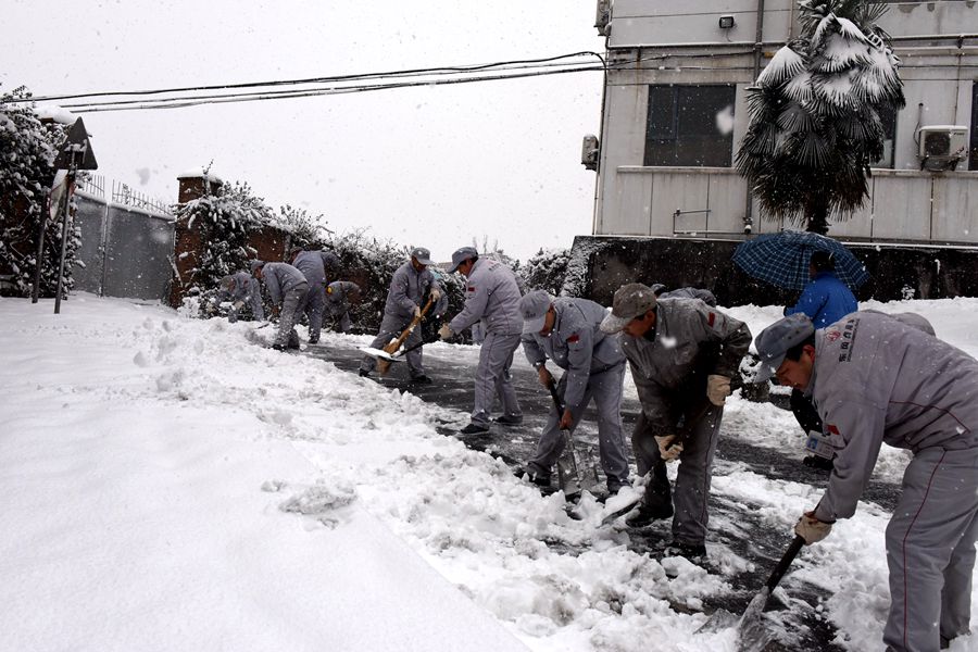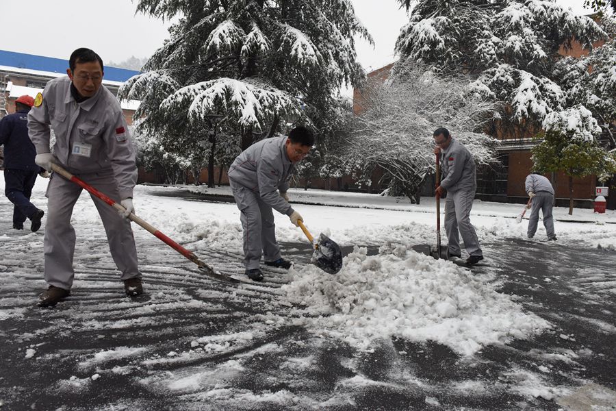 接到短信的鍛造員工,急匆匆從各方趕來(lái)。鍛造公司總經(jīng)理張朝敏來(lái)了,黨委書(shū)記張乾來(lái)了,副總經(jīng)理張兆德來(lái)了,總經(jīng)理助理朱家剛來(lái)了,綠化班的師傅來(lái)了,作業(yè)部的師傅們也來(lái)了……一路艱辛,一路跋涉,顧不上欣賞雪中美景,顧不上抖去身上的雪塵,紛紛趕到廠里參加除雪活動(dòng)。