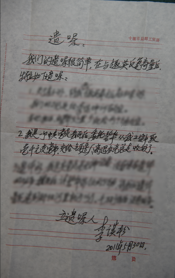 李謨松生怕他的愿望被疏忽或遺忘,趁他還能動筆的時候,就悄悄地在遺囑里面寫下了去世后向黨組織交納1000元黨費的心愿。2018年2月,彌留之際的李謨松拉著老伴的手說:“別忘了向黨組織交納我的黨費……”李謨松去世后,他的老伴才發現他的叮嚀和囑托不僅僅是口頭的交代,而且還寫進了遺囑,是真情實意對黨恩情的一片流露,感動的她兩行熱淚奪眶而出……她心里默默地說,老李,放心,我一定把你的遺愿向黨組織表達,實現你刻在骨子里的愿望。