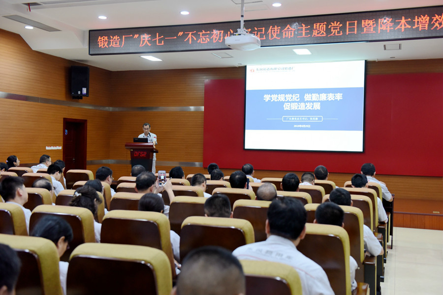 6月25日,鍛造廠黨總支組織高管、中管、黨支部委員、黨小組長、風險崗位人員120余人以觀看警示教育視頻短片、講授廉政專題黨課、解讀井岡山精神、發布黨員改善課題等豐富而新穎的形式集中開展了“不忘初心 牢記使命”主題黨日暨降本增效保目標活動,為黨的98歲生日的到來獻上一份特殊的禮物。