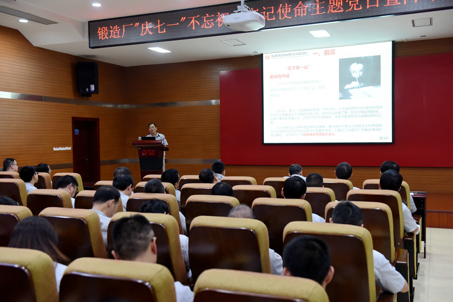 黨的初心和使命從何而來,又將如何不忘初心,牢記使命,將之具體地融入到鍛造廠的發展實踐中去?該廠副廠長肖和交結合黨中央“不忘初心、牢記使命”主題教育工作的總要求和自己到井岡山學習的切身感受,從《艱苦卓絕的井岡山斗爭》、《光照千秋的井岡山精神》、《弘揚井岡山精神》三個層面講授了偉大的井岡山斗爭孕育的井岡山精神,井岡山精神奠定了中國共產黨優良的革命傳統,及共產黨初心和使命的形成與發展光大的歷史過程。他說,重溫黨的初心和使命,就是要時刻不辱黨員的稱號和責任,要把這份責任與踐行東風汽車公司、東風商用車公司的發展愿景、價值觀、使命結合起來,與“東風鍛造”十一次黨代會確定的“加速文化融合,推進體制改革,發揮整體優勢,實現鍛造做強、鑄造做優,使鍛造公司成為行業領先企業”的發展主題結合起來,與鍛造廠文化落地、現場改善、降本增效的具體任務結合起來,充分發揮黨員的先進性,為公司的改革發展立新功、創新績。