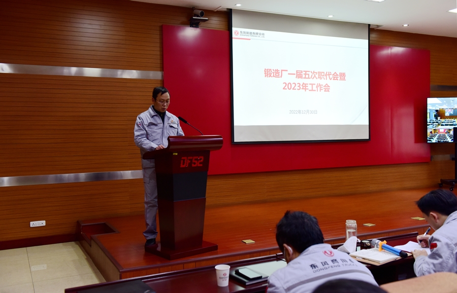 下午三點半,在鍛造廠兩會上,趙業勤向大會作“2023年行政工作報告”及“2023年黨建工作報告”。工作報告以習近平新時代中國特色社會主義思想為指導,全面貫徹黨的十九屆六中全會精神、二十大精神,緊緊圍繞“152”事業計劃及工廠工作方針來總結成績,剖析不足,展望未來,提出了“以兩級事業計劃為牽引,以體系建設為核心深化客戶體驗與服務,深化現場管理體系,深化守正創新,深化人才培養,同向同節奏持續建設多、快、好、省的高質量發展之路”的工作思路,號召全體干部員工在新的一年堅定信心、勇毅前行,為奮力譜寫東風鍛造高質量發展新篇章不懈努力。